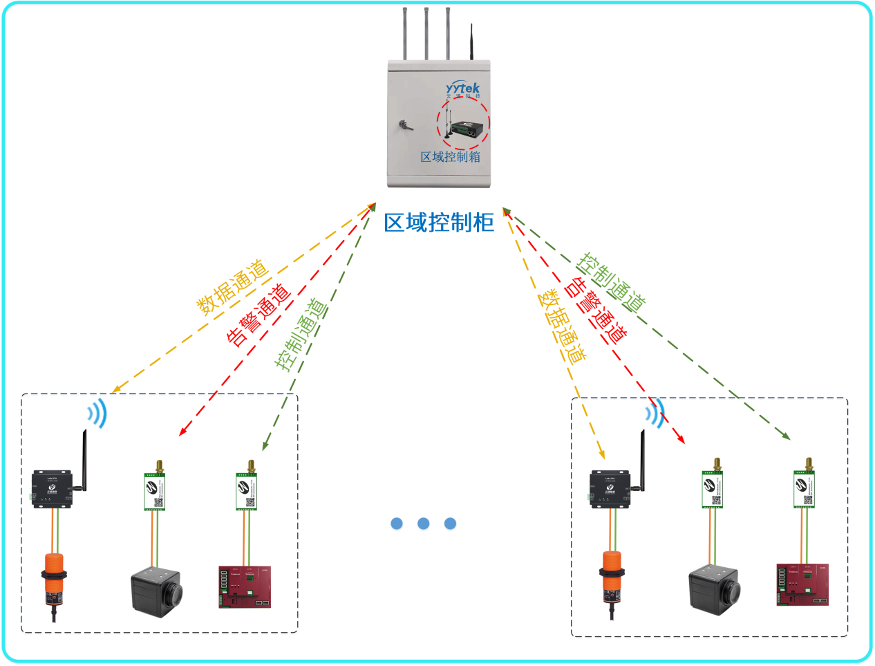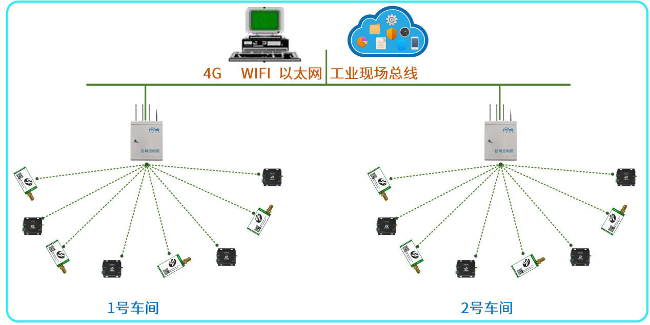 一個廠區可以配備多個區域控制箱,每個控制箱最多配備500-2000個設備節點,每個區域柜都能與工業系統進行對接,也可相互通訊;