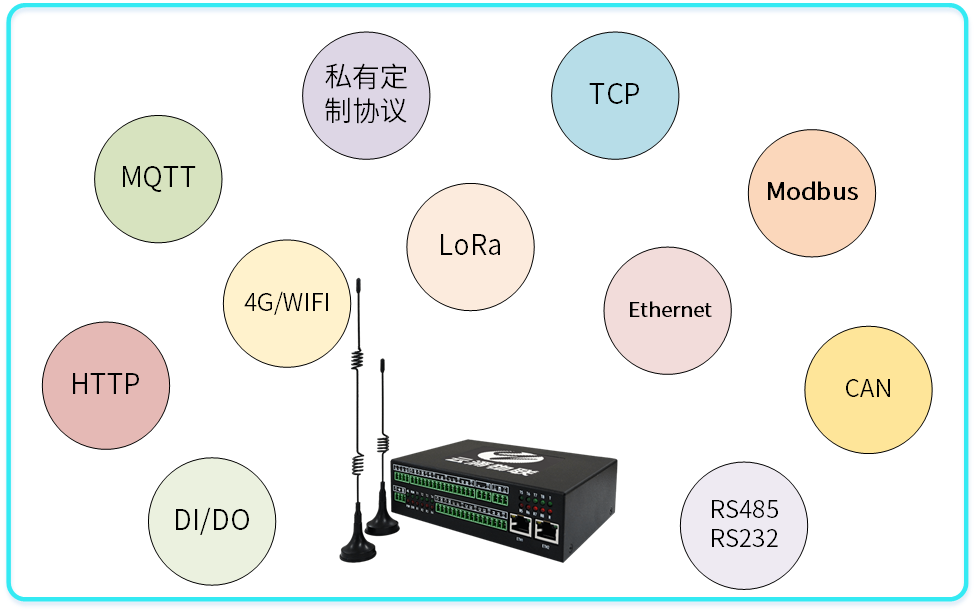 可與LoRa節點進行相互通訊,也可以與工業系統進行對接;