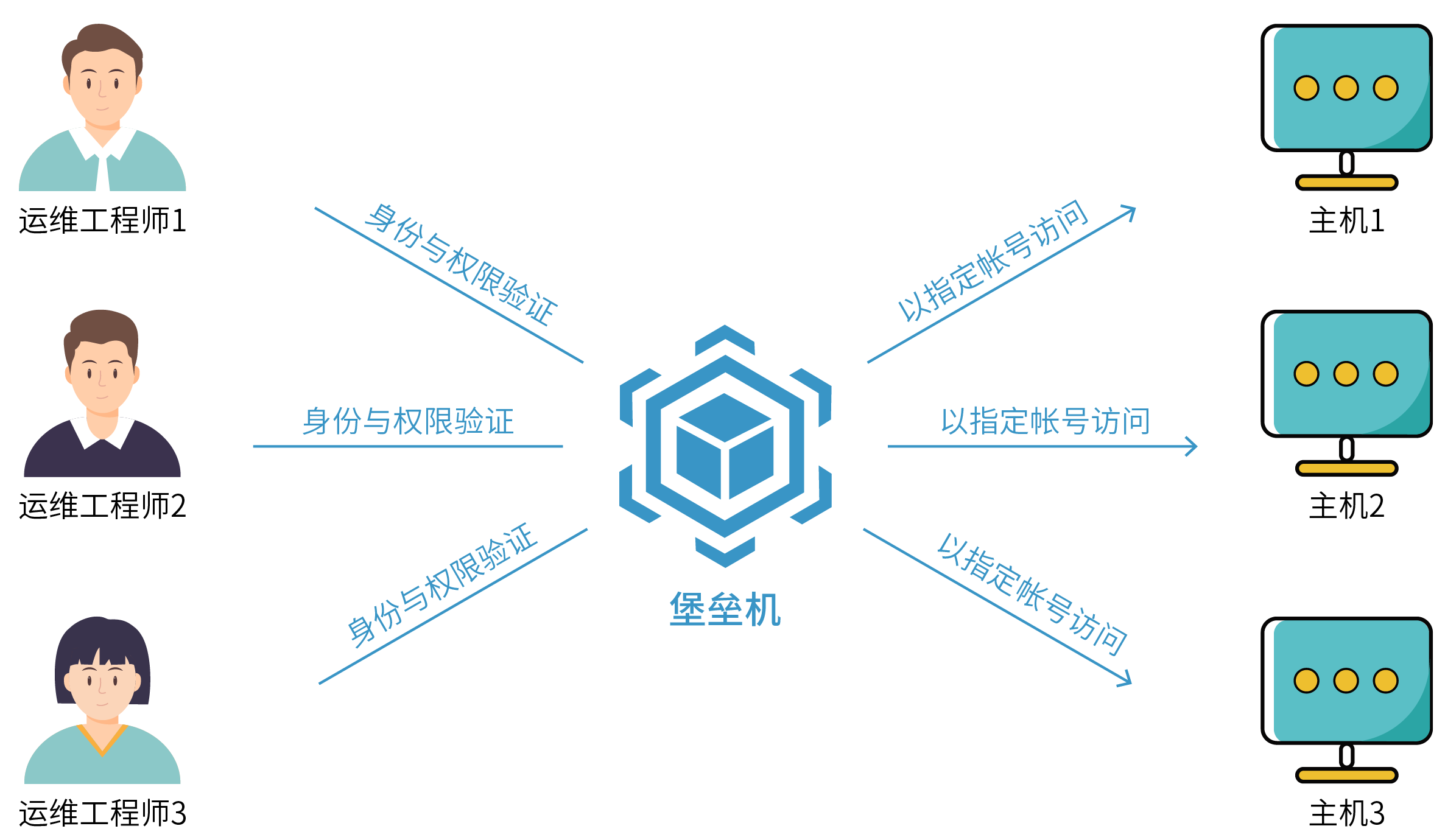 2.維護人員的權(quán)限無法基于最小權(quán)限分配原則管理,難以實現(xiàn)更細粒度的命令級權(quán)限控制,不同背景運維人員的行為給信息系統(tǒng)安全帶來較大風險,系統(tǒng)安全性無法充分保證;