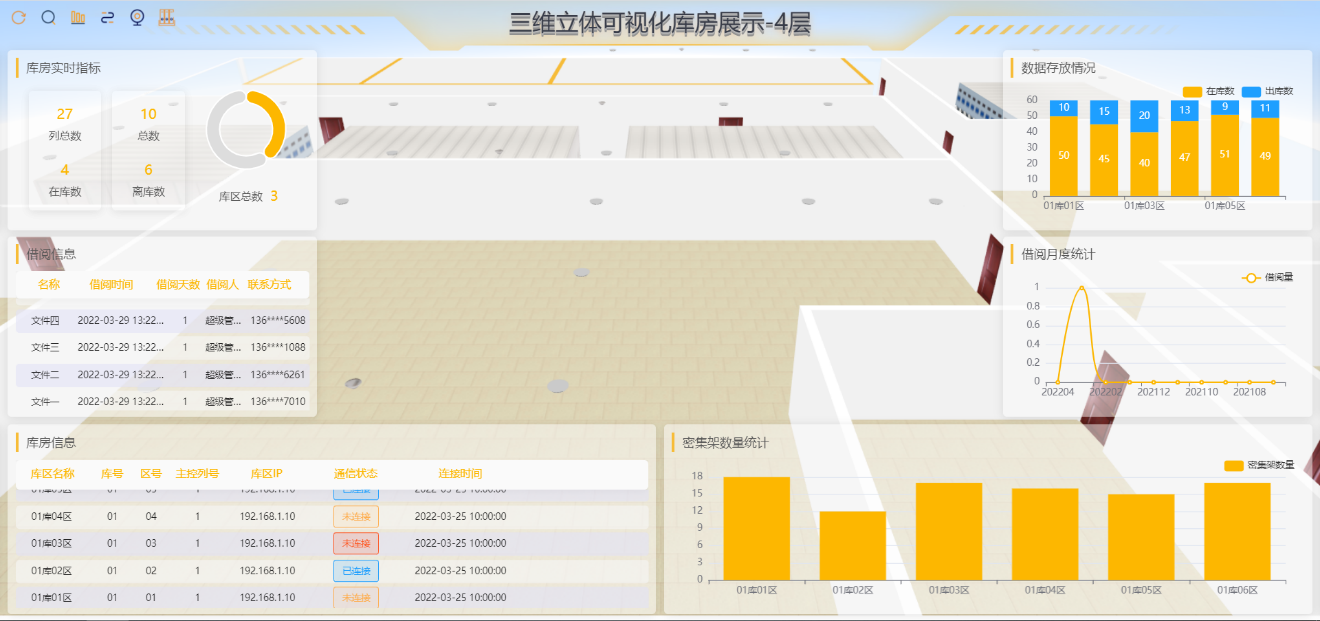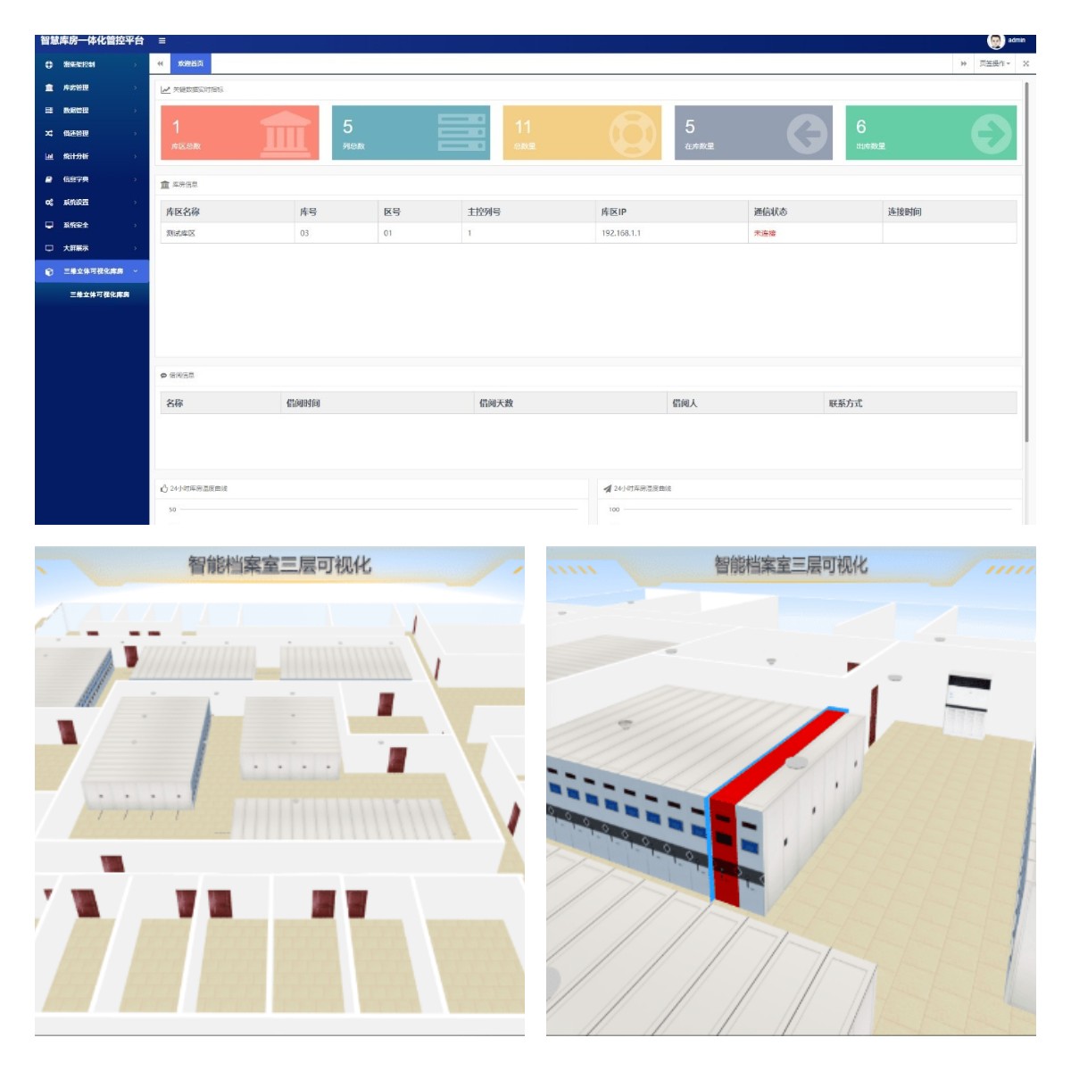 - 通過三維數字化庫房,可實現業務數據查詢,遠程檔案設備操作,全景環控系統設置,安全態勢感知上報等功能,助力用戶數字化轉型。